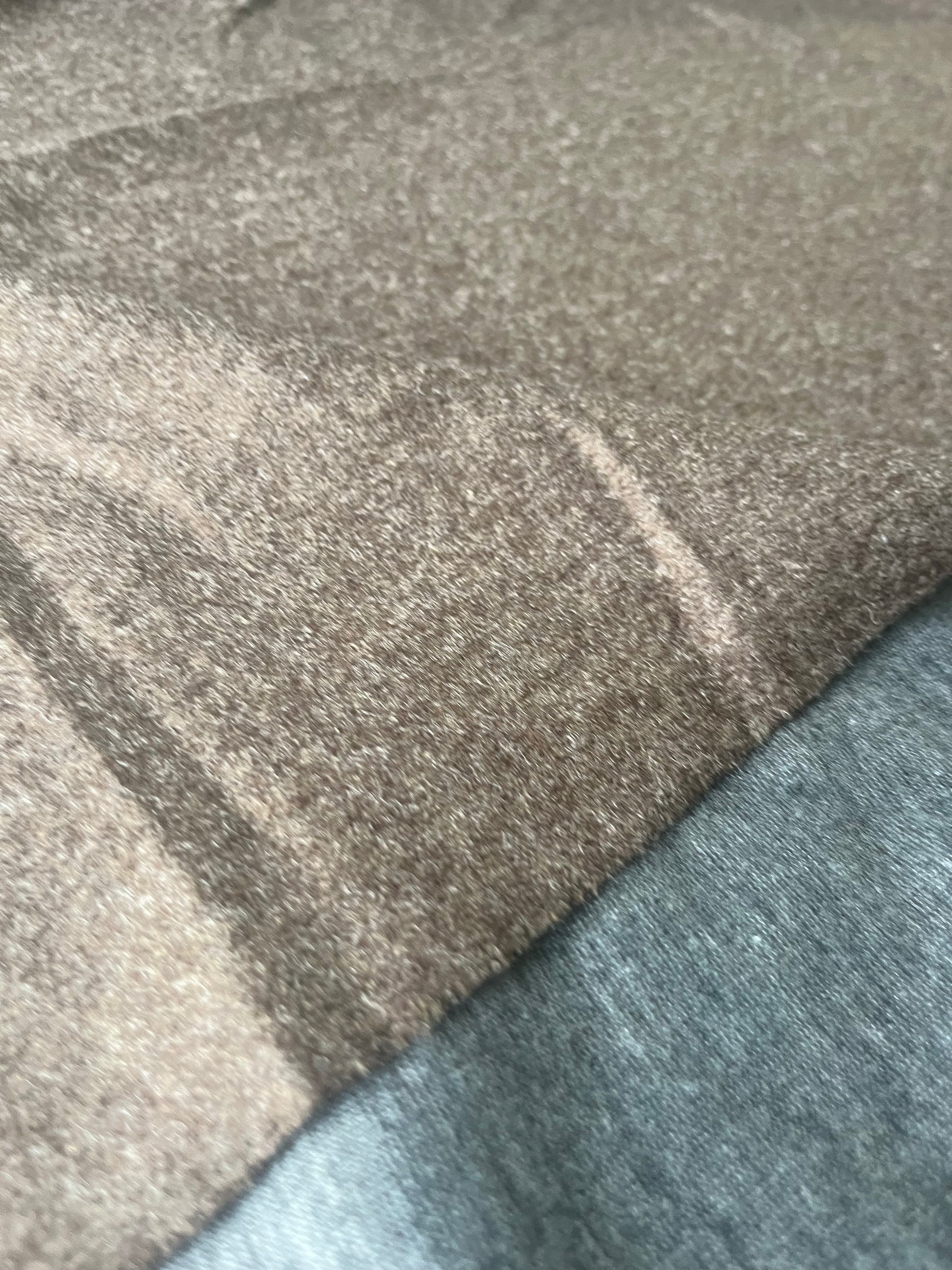 outside brown wool, inside grey jersey