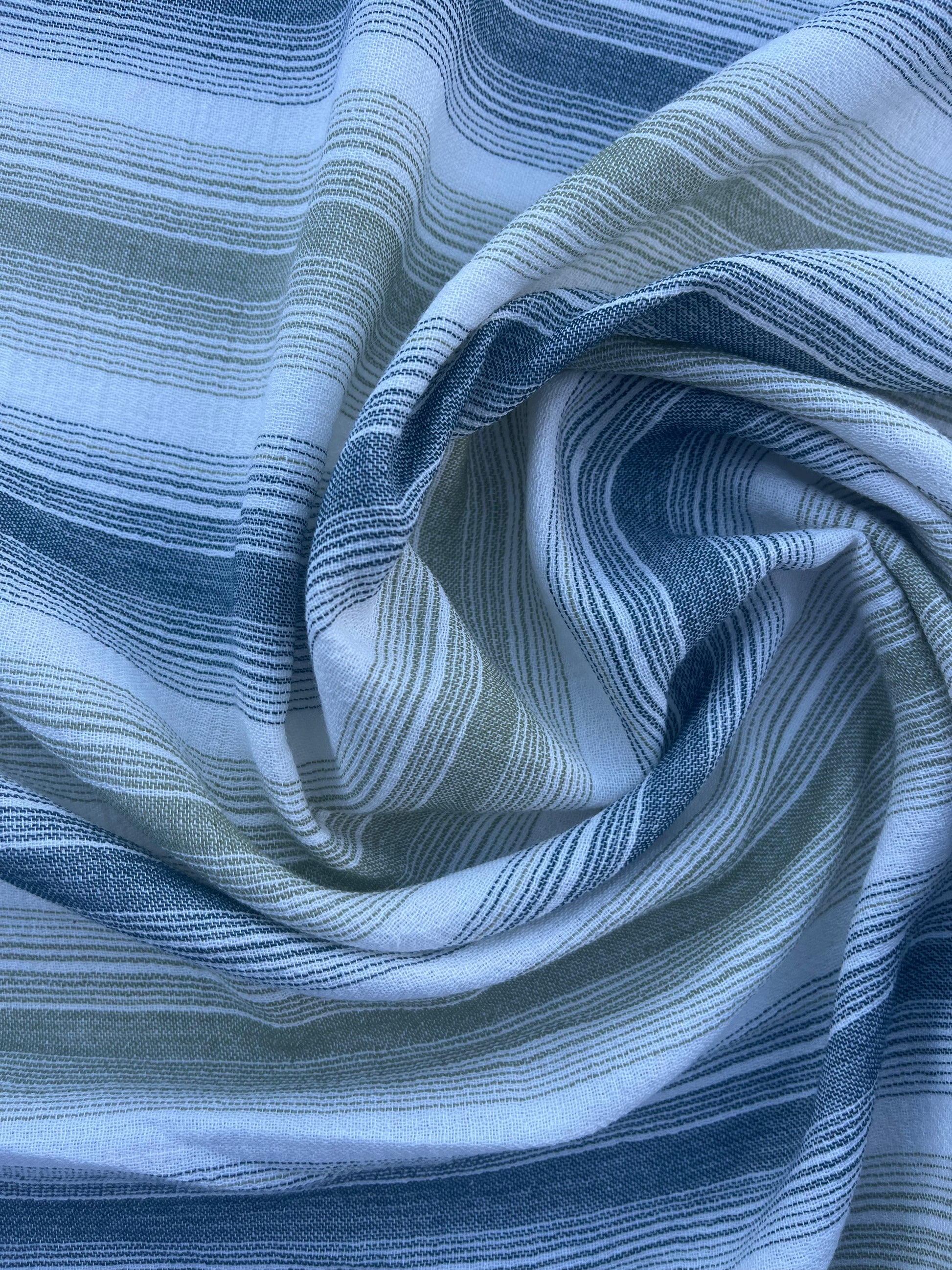 HERA 001 Gauze crinckle light jacquard stripes ecru/green