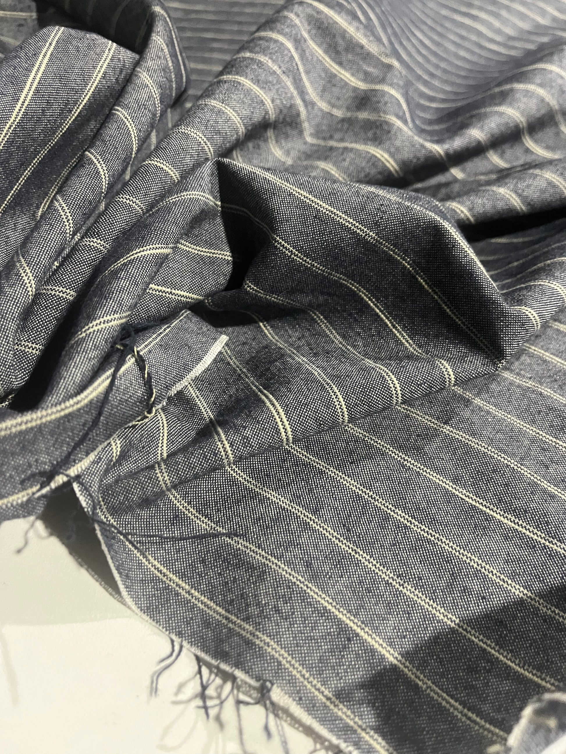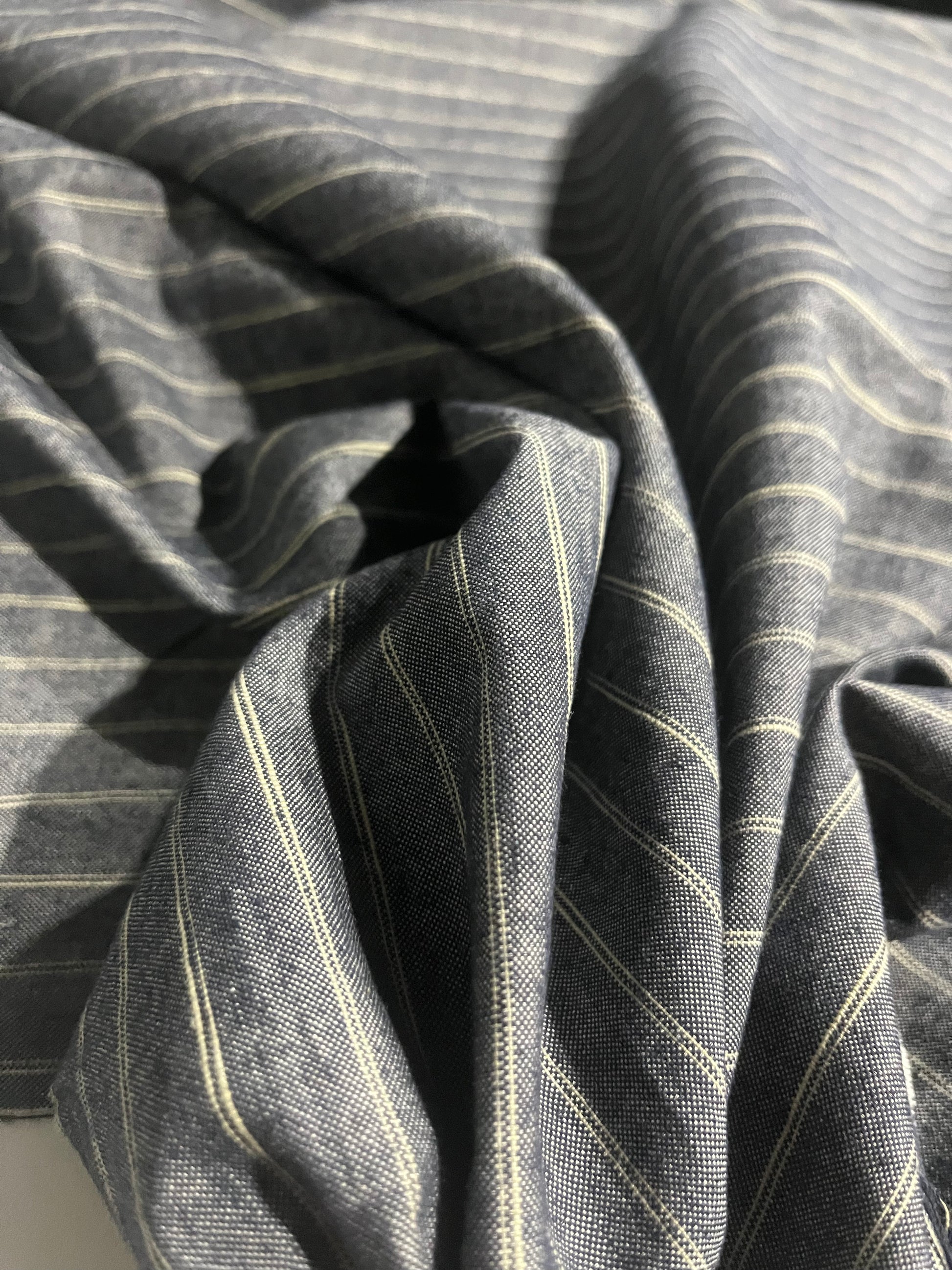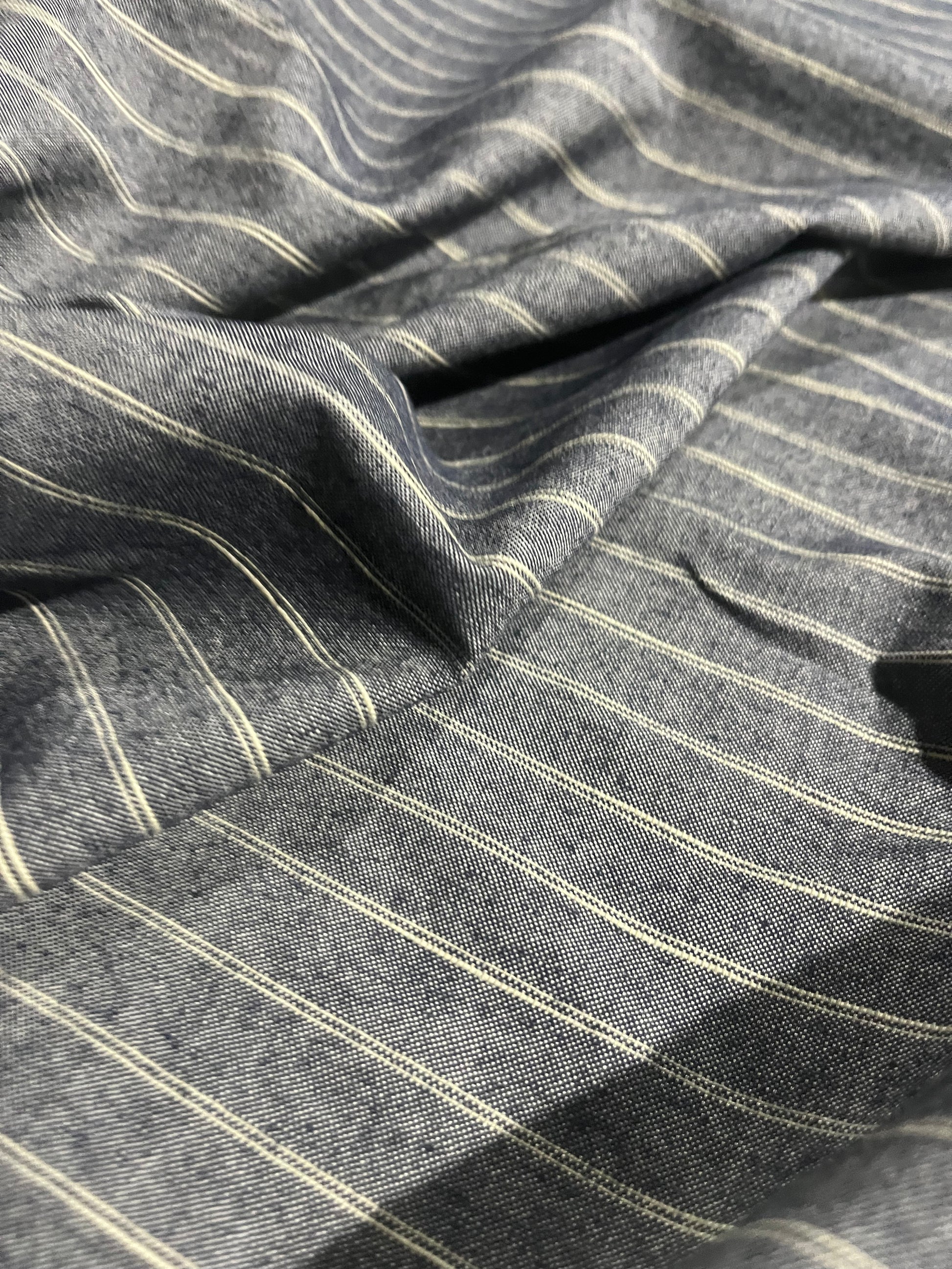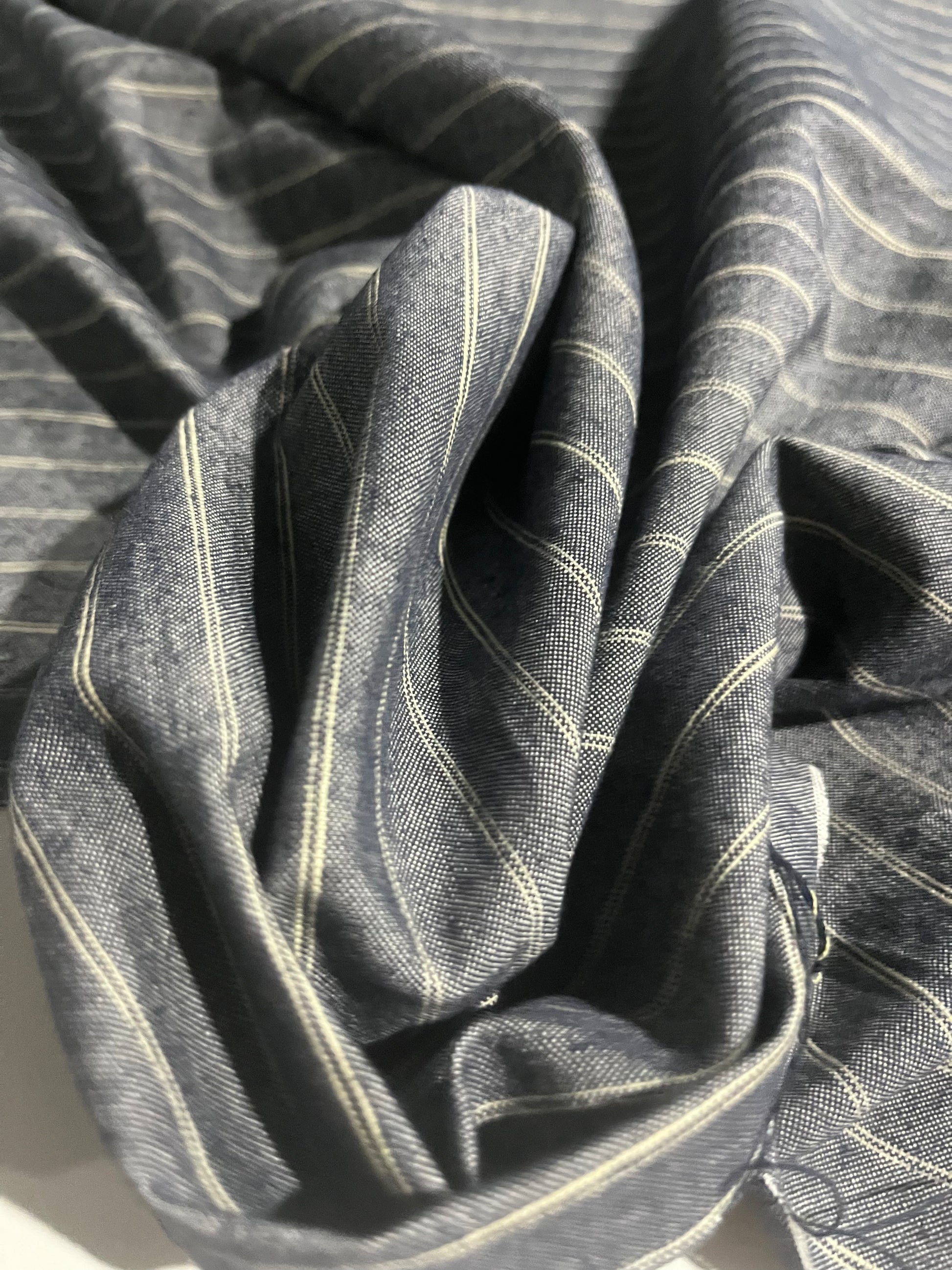 Twill weave in brown/indigo/off white stripesthat will wash out and become even more soft and beautiful over time.