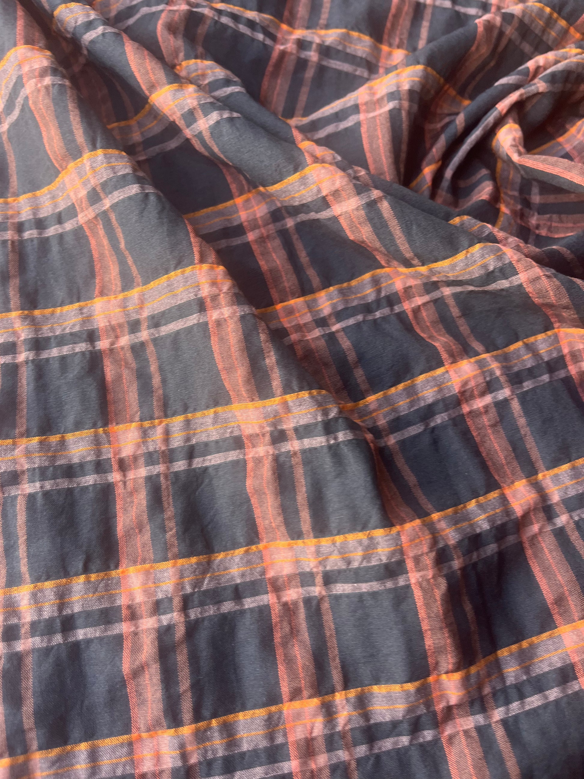 MONTI 015 43947/142 cotton crinkle check brown/orange/brique