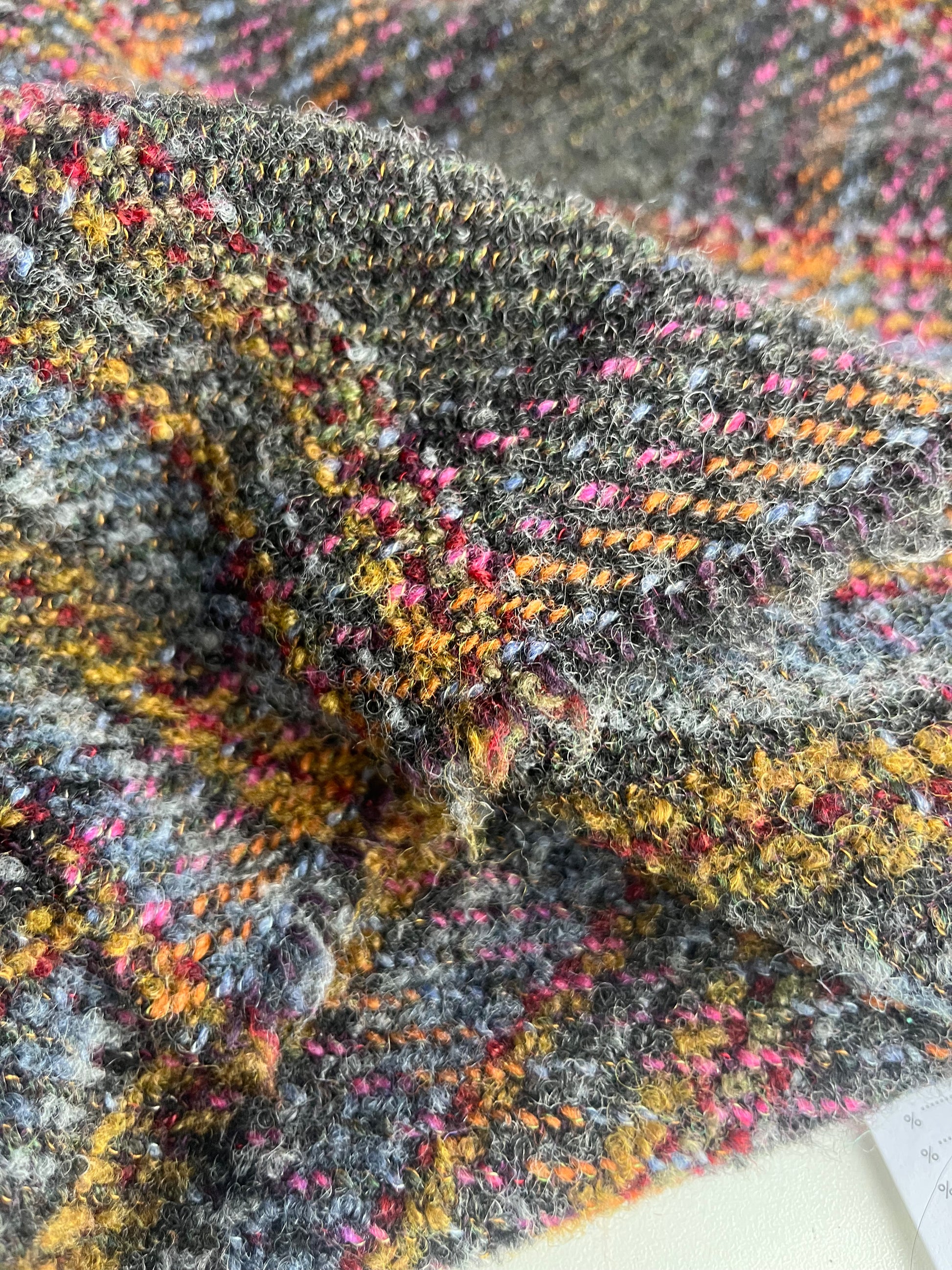 BASILE 004 heavy wool tweed petrol/orange/pink