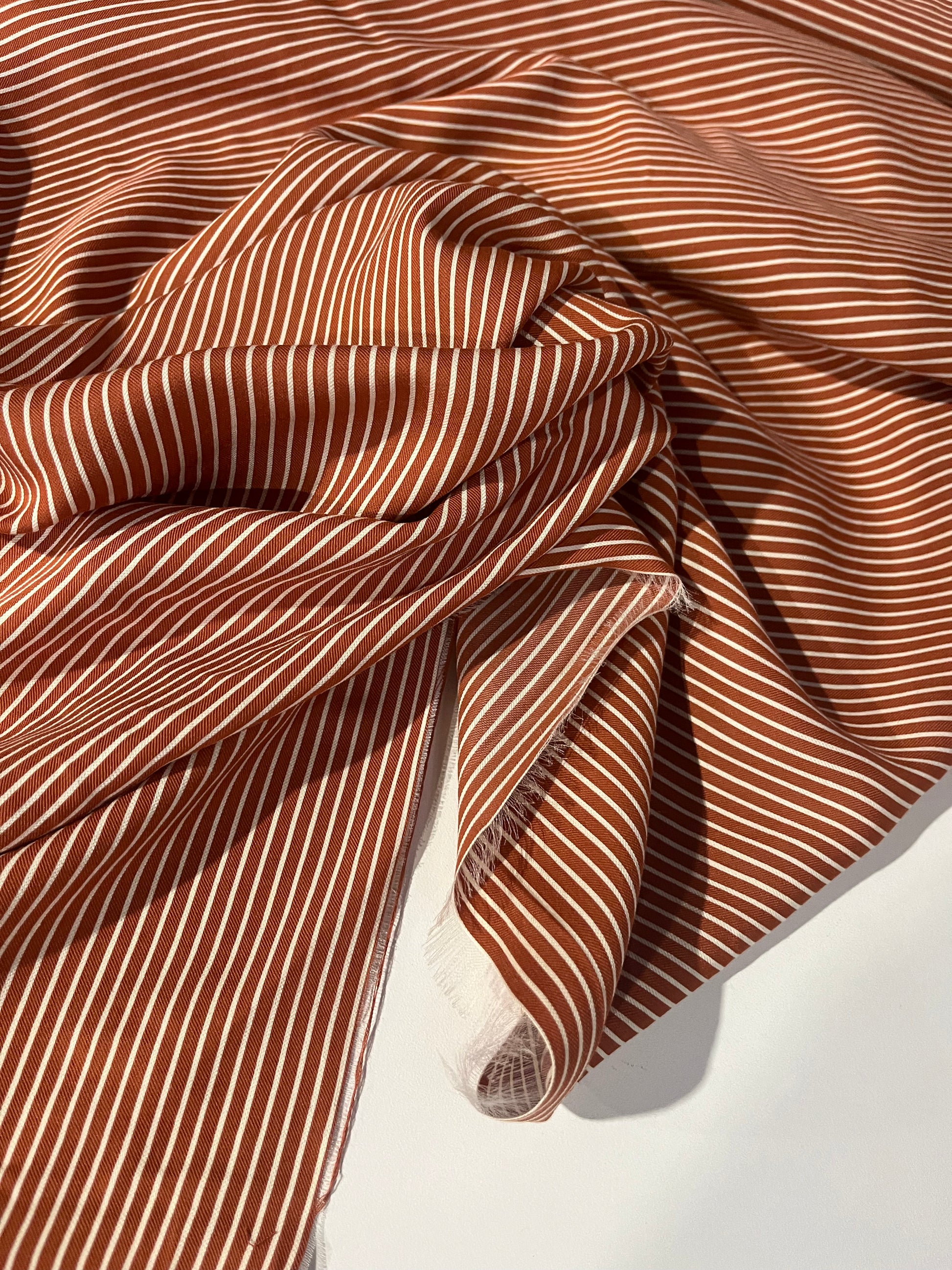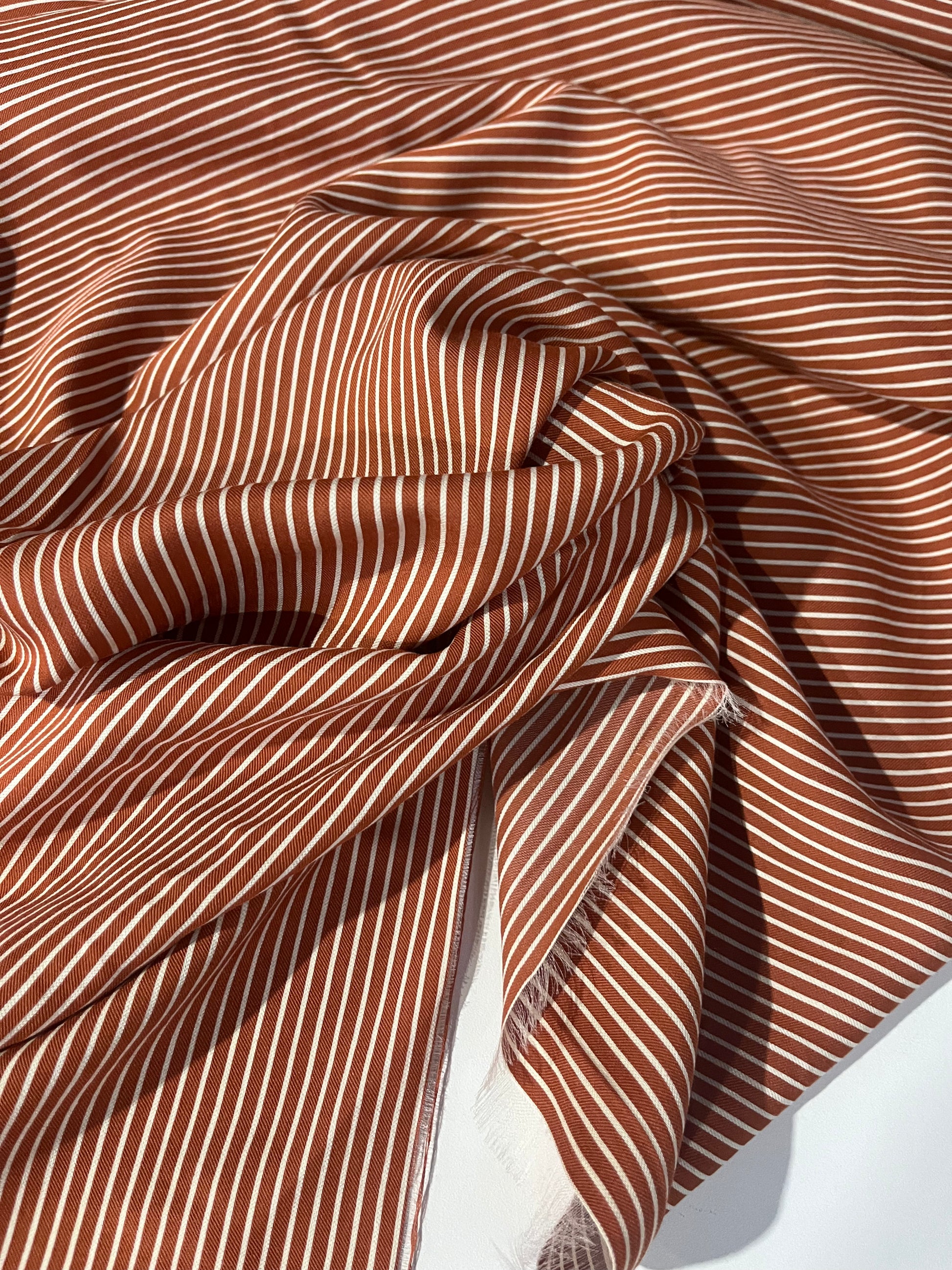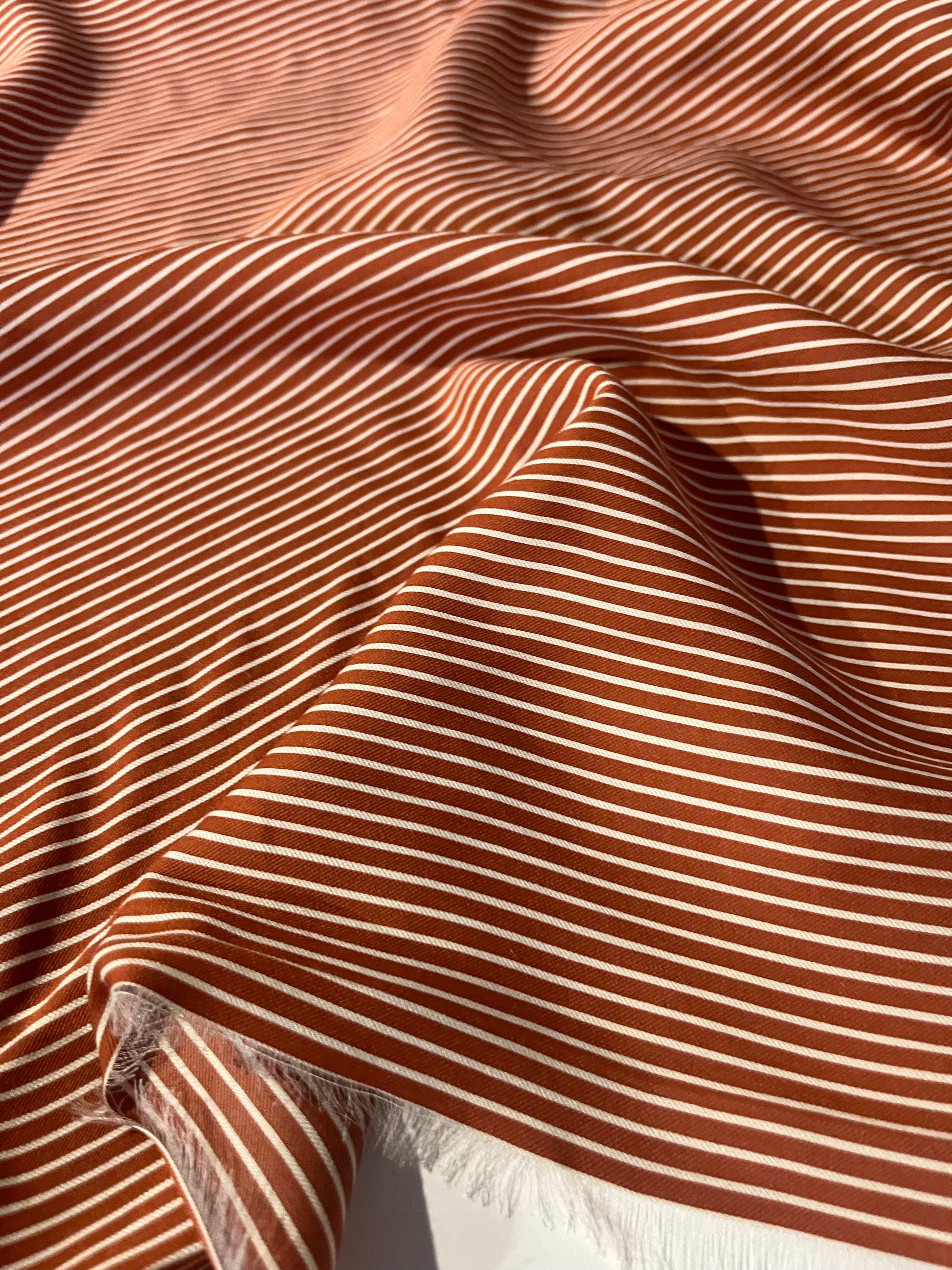 This is a colour woven horizontal stripe brique/white.