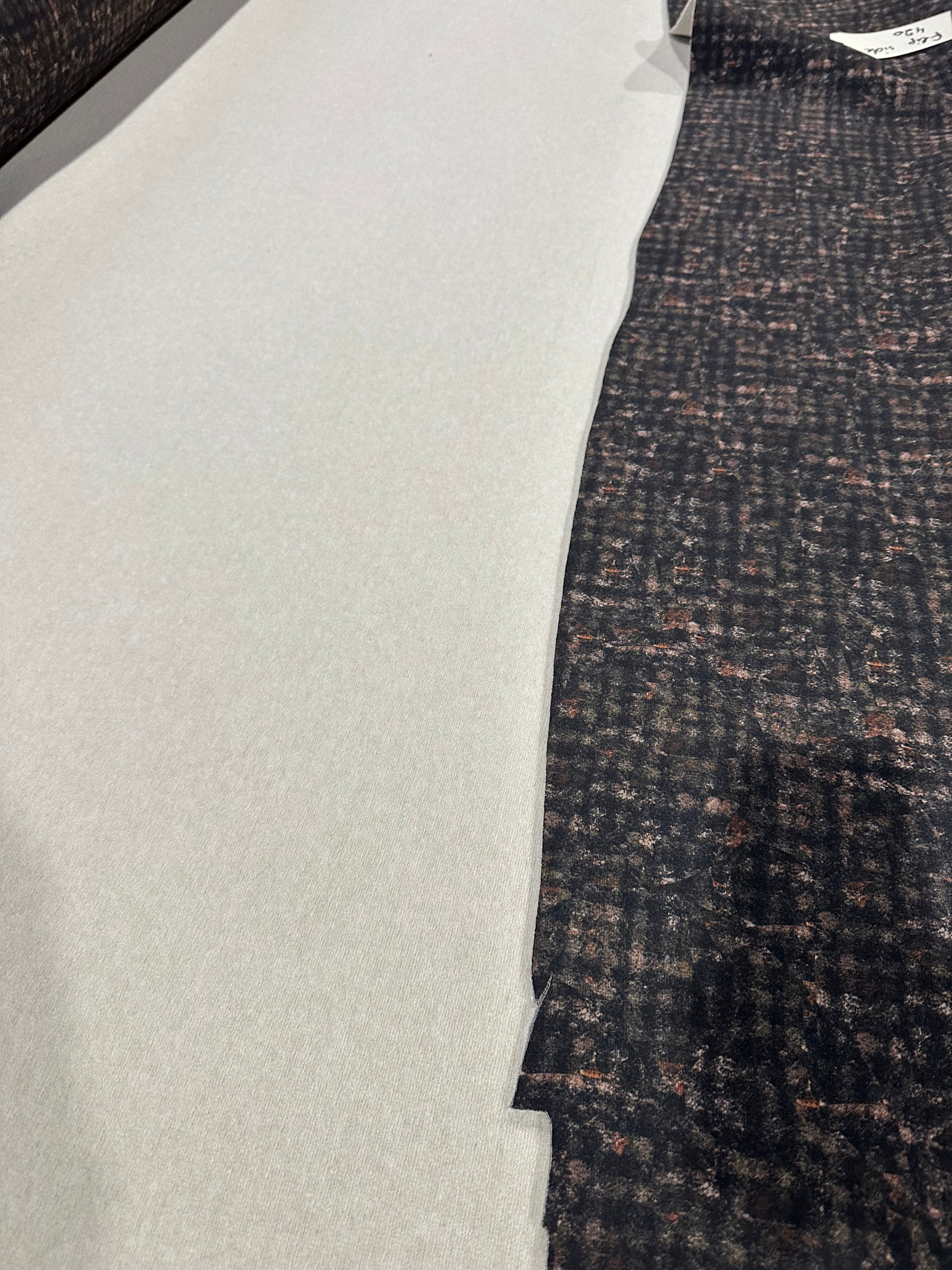 This luxurious fabric feels very soft and warm and has 2 faces: 1 woolen face, 1 plain jersey face. These kind of fabrics are perfect to use for "RAW CUT" items such as coats or jackets.