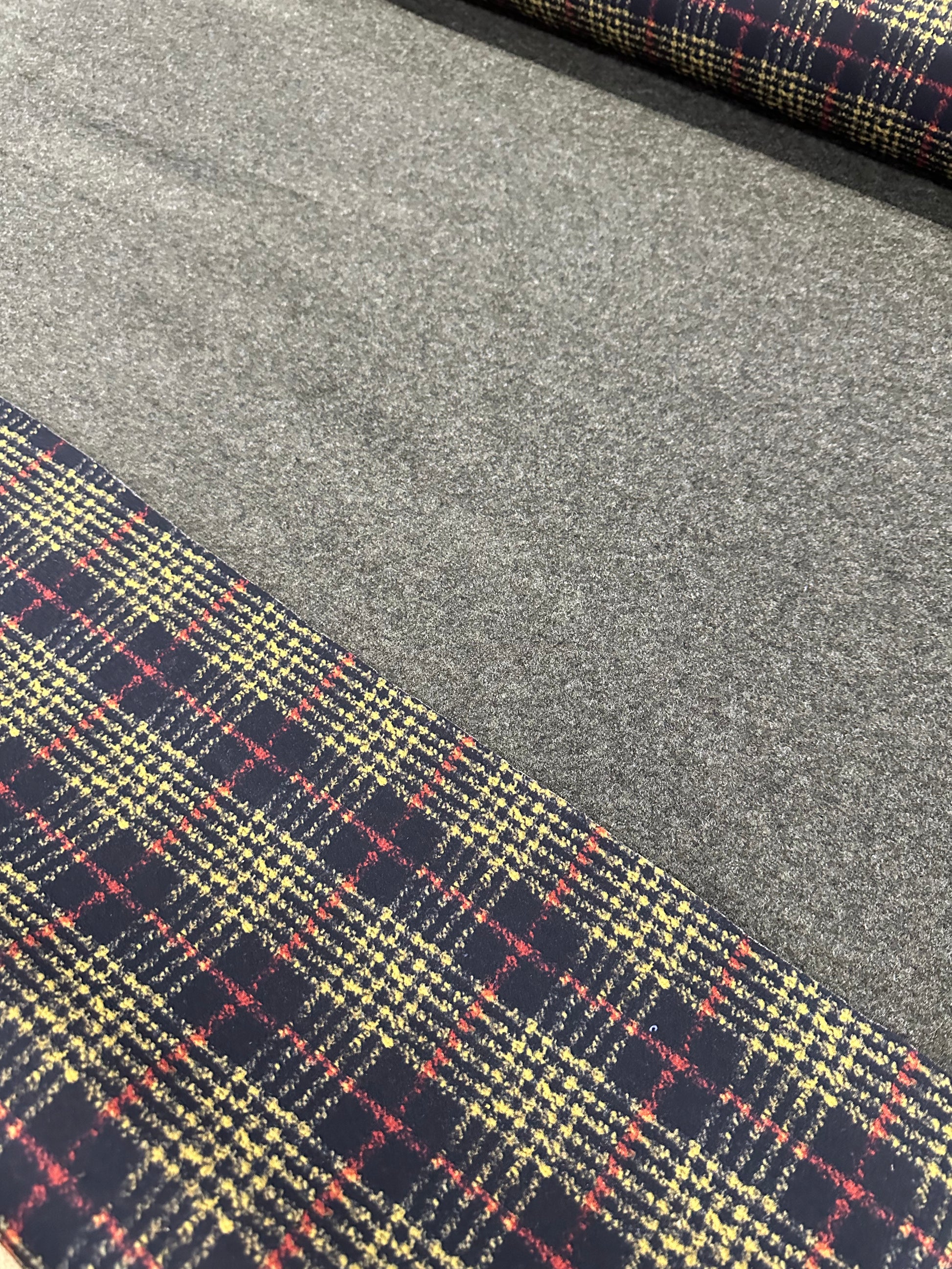 red yellow black check double face moss green