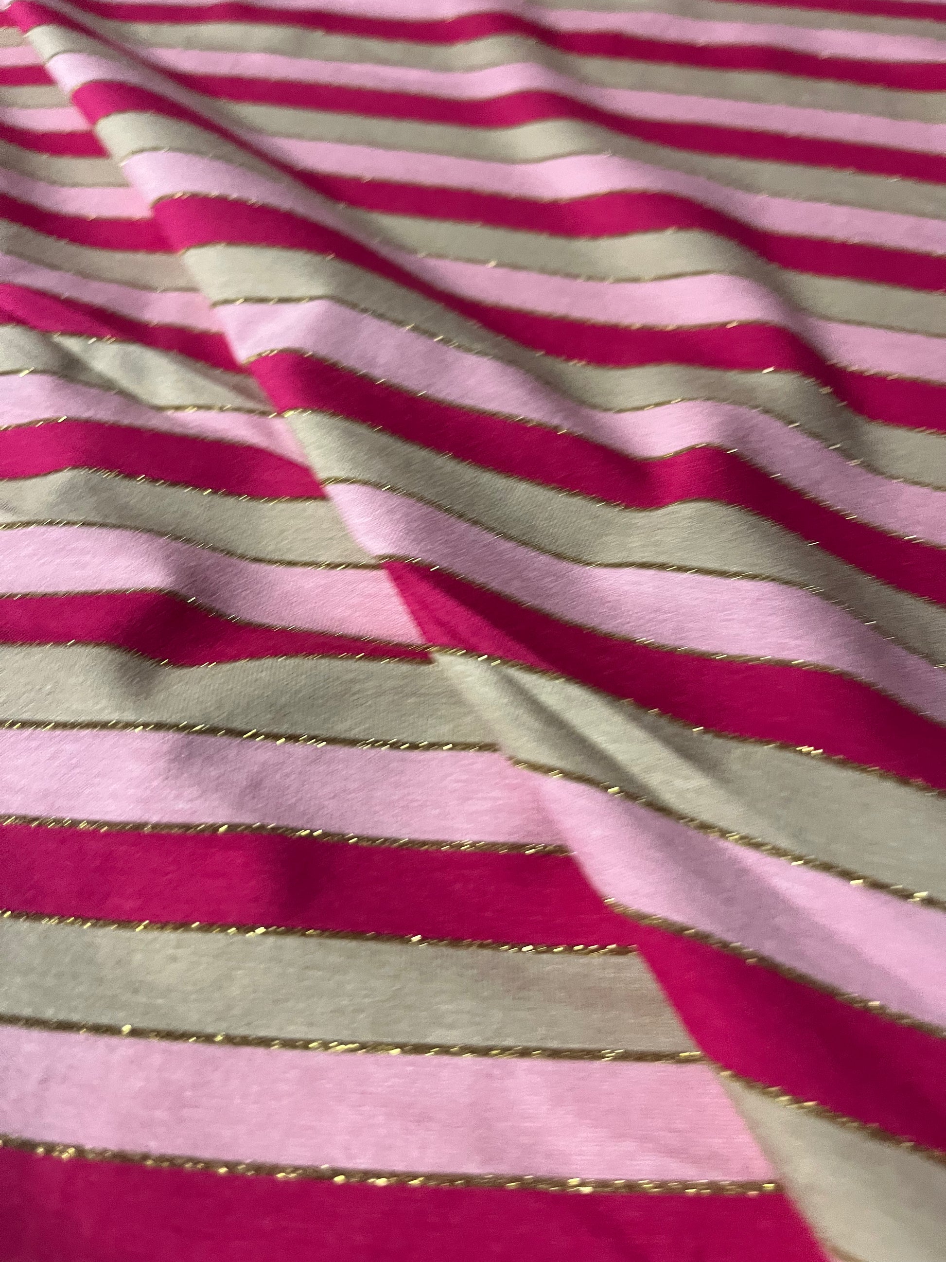 The fabric is soft and not transparent.fuchsia/pink/gold/sand