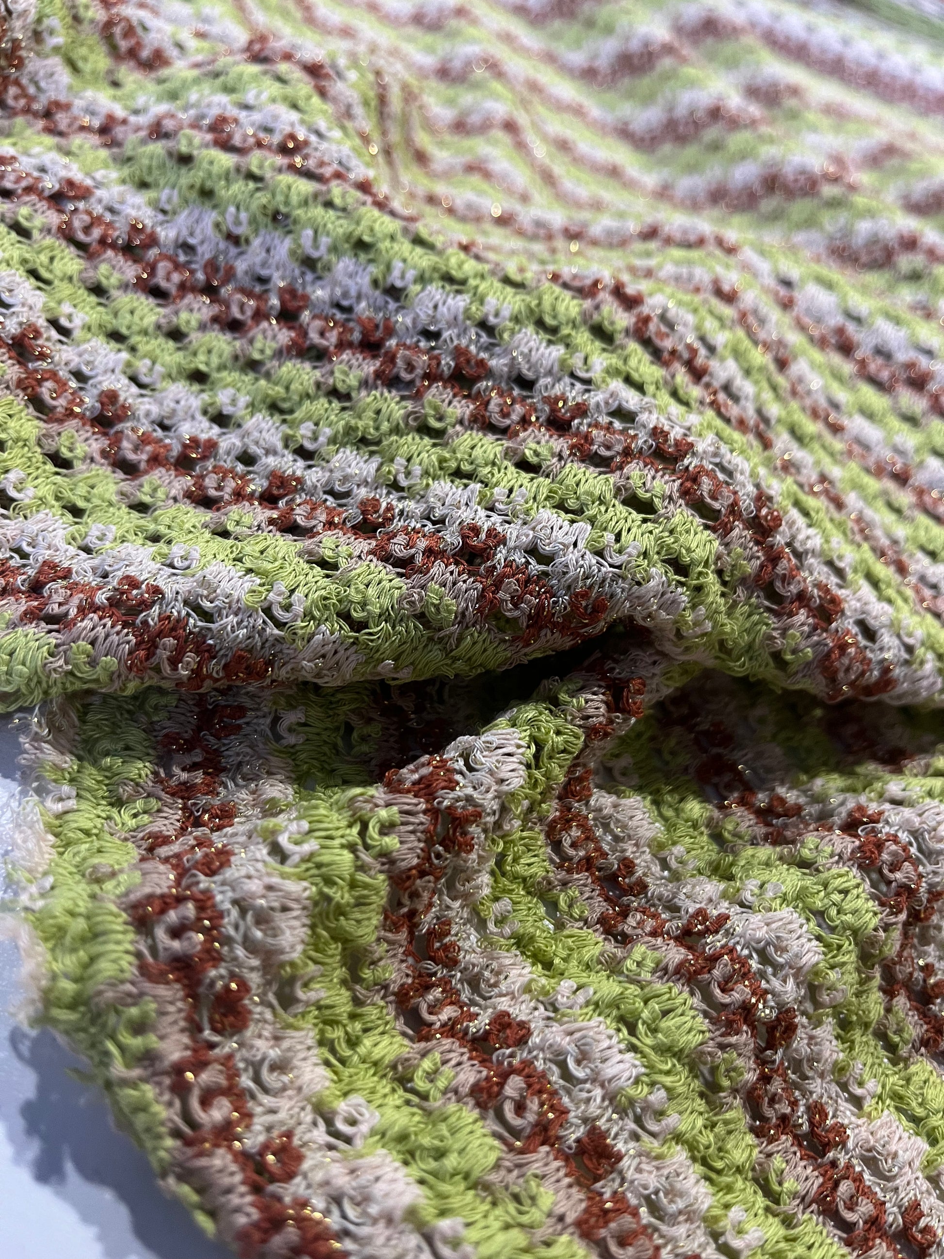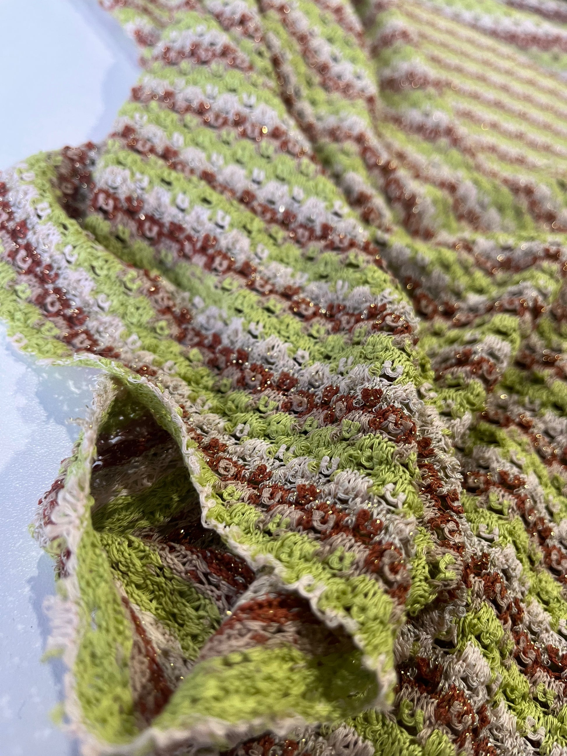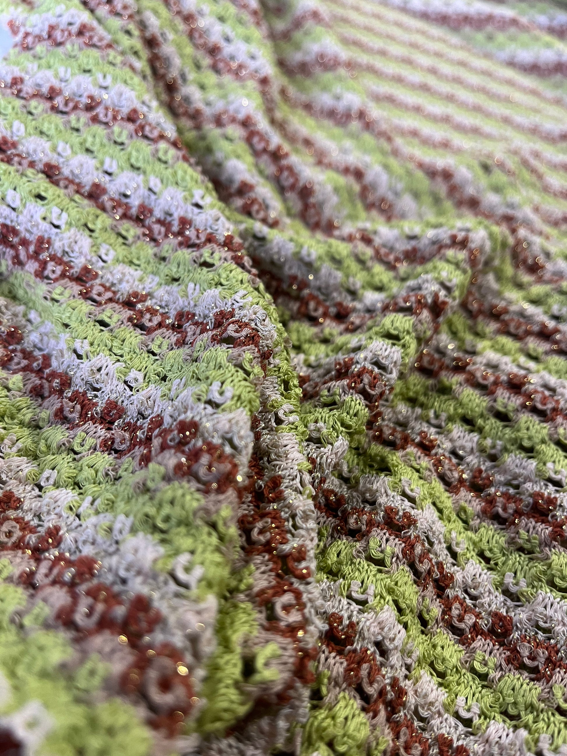 Beautiful jersey crochet stripes, bought from the warehouse of Eurojersey Spa. A fabric producing group in Caronno, in the North of Milan.