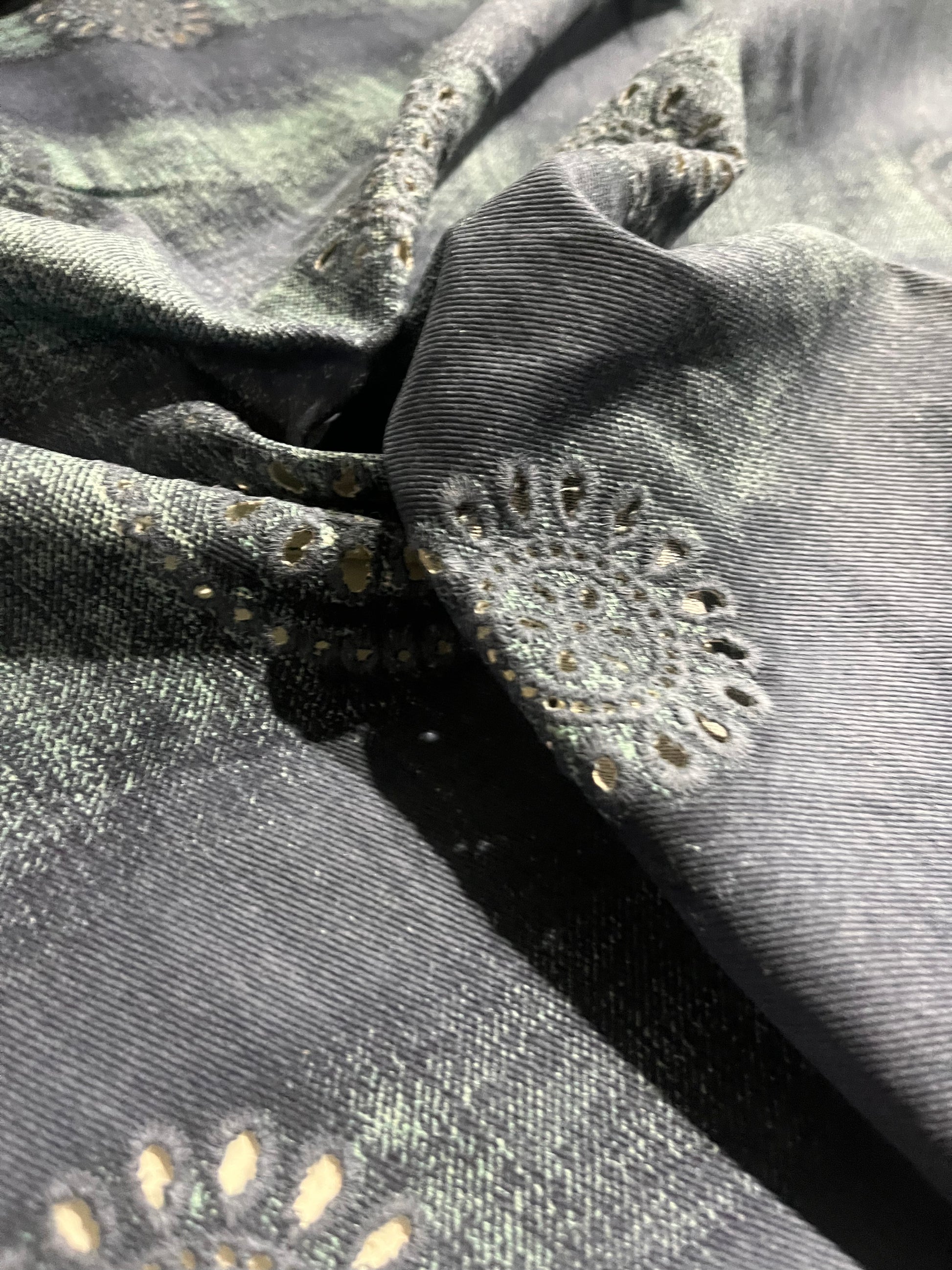 Embroidered denim, that will wash out and become even more soft and beautiful over time.
