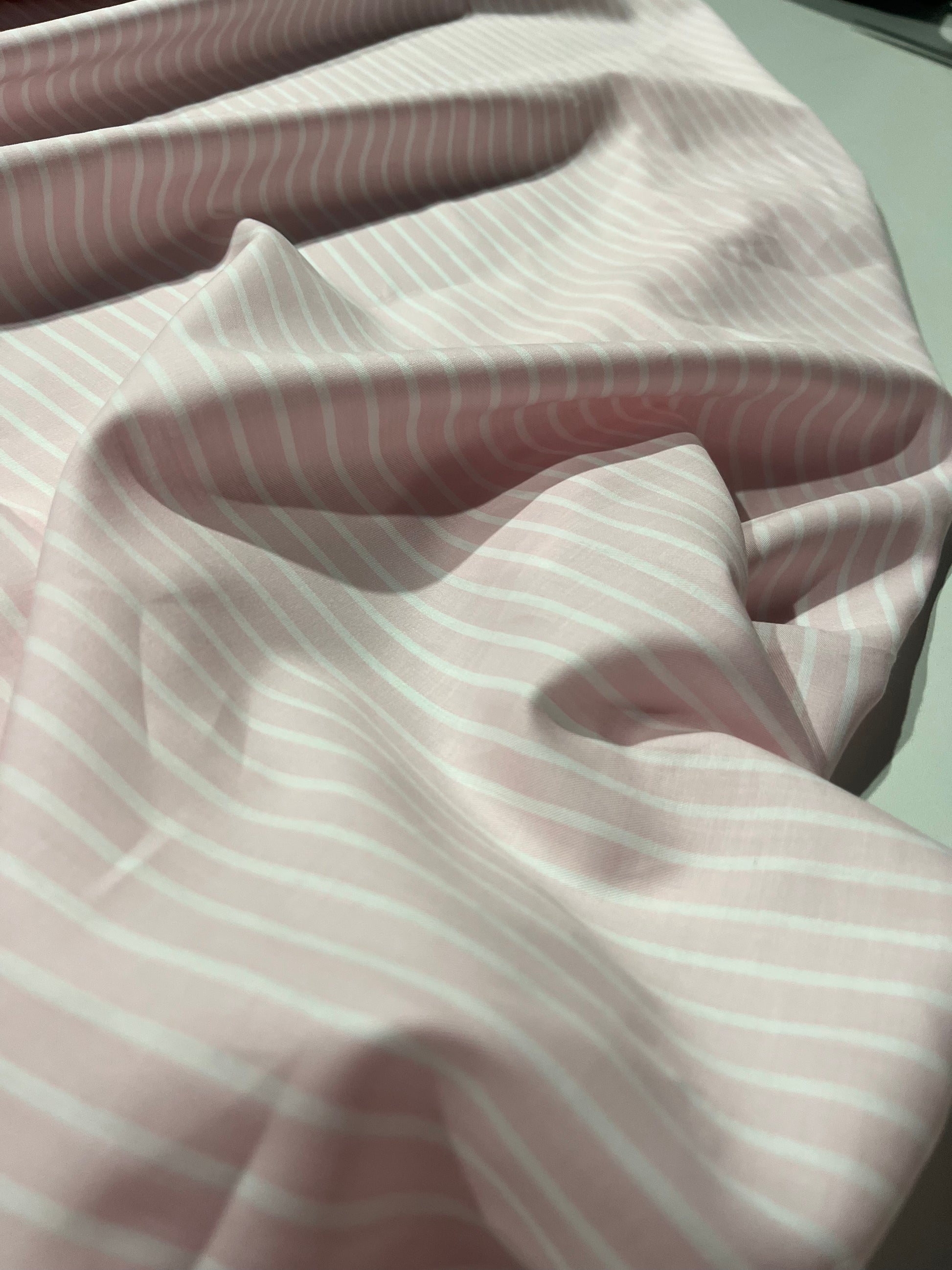 this is a colour woven vertical stripe in pink/white.