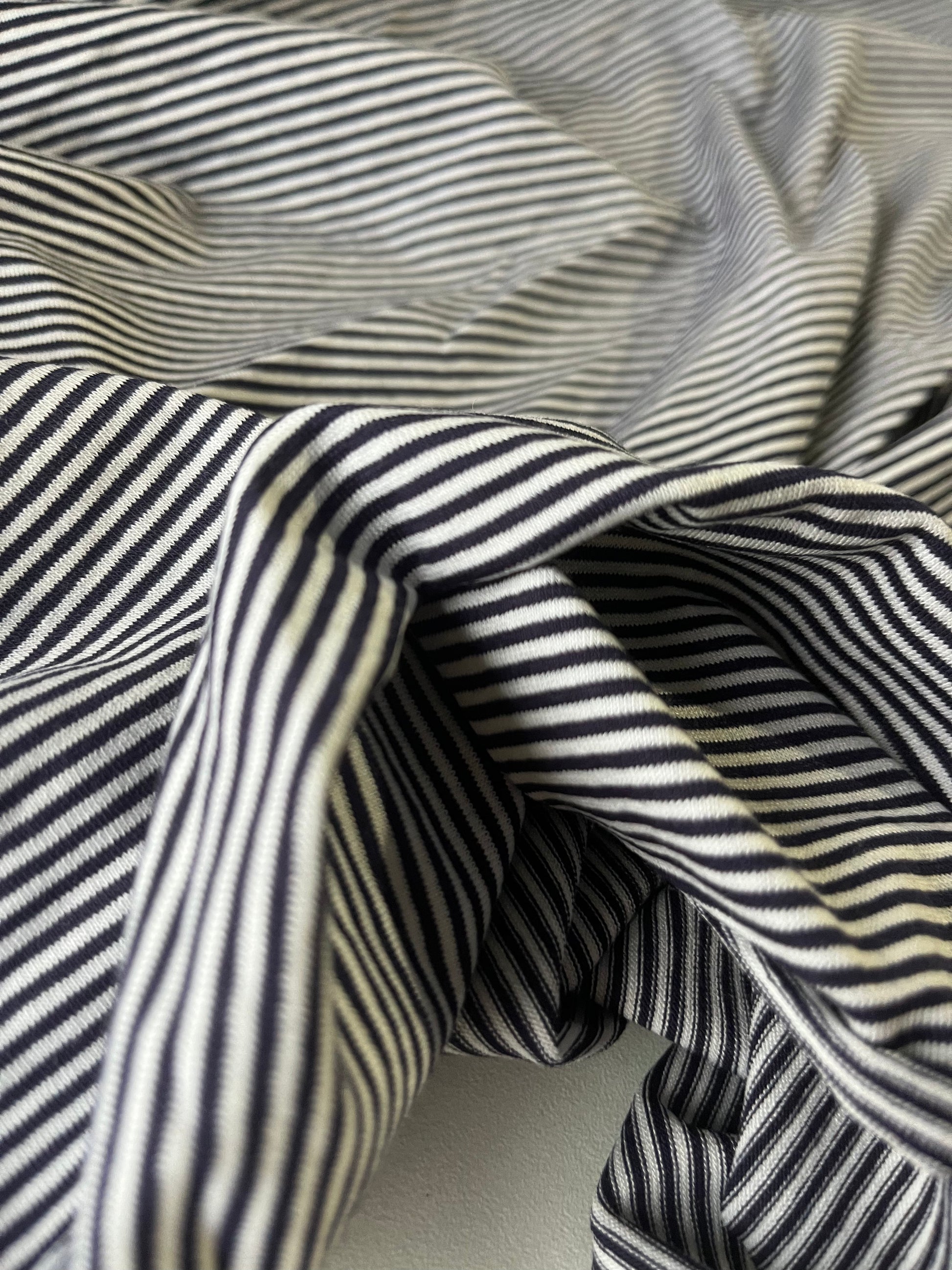 A cotton jersey stripe in white/indigo.