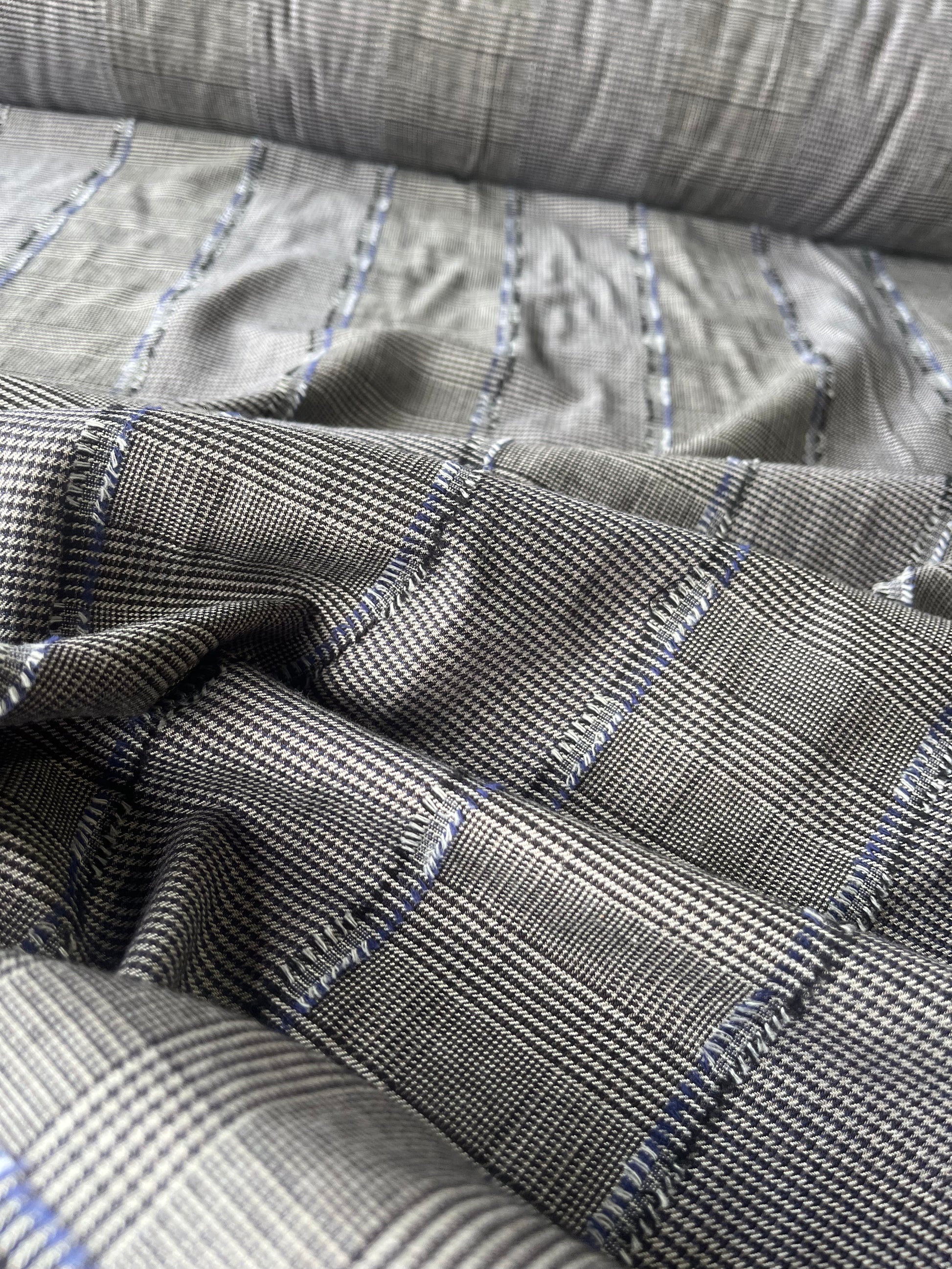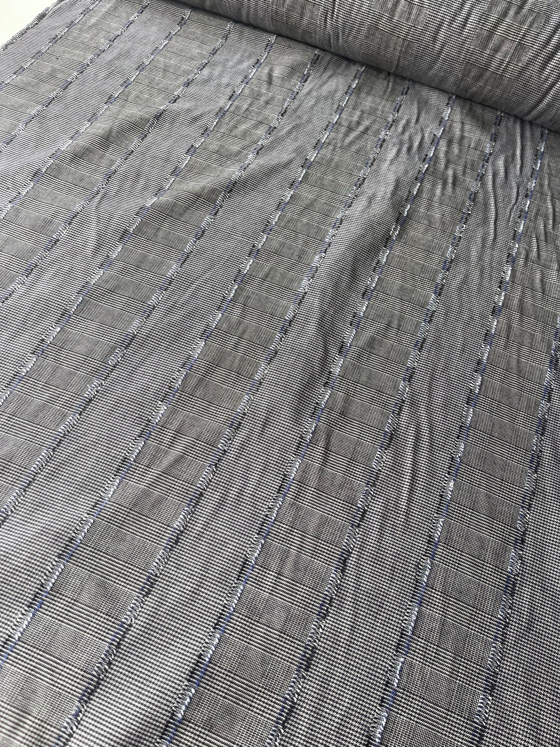 Colourwoven check with fil coupé stripes in the length.