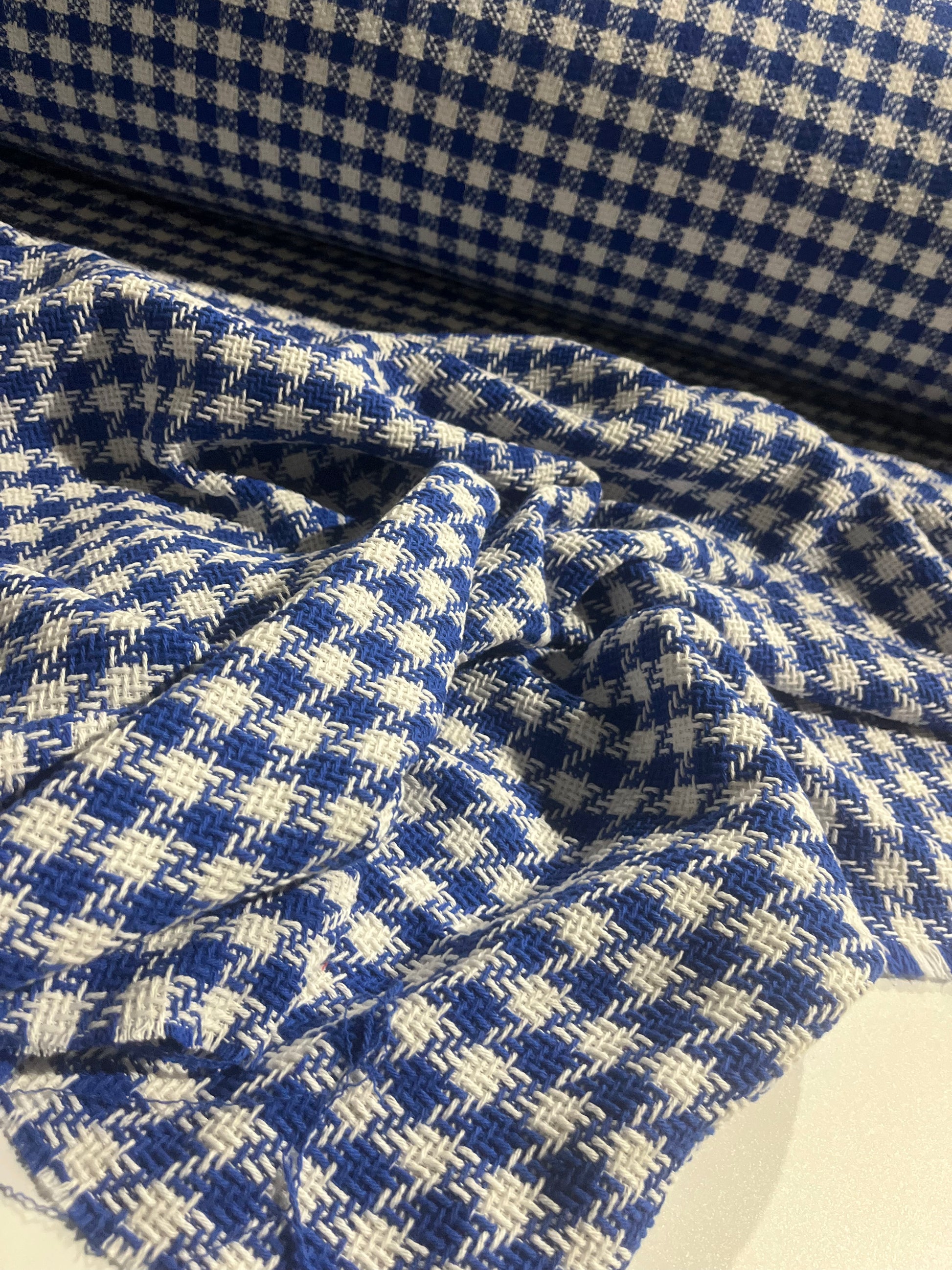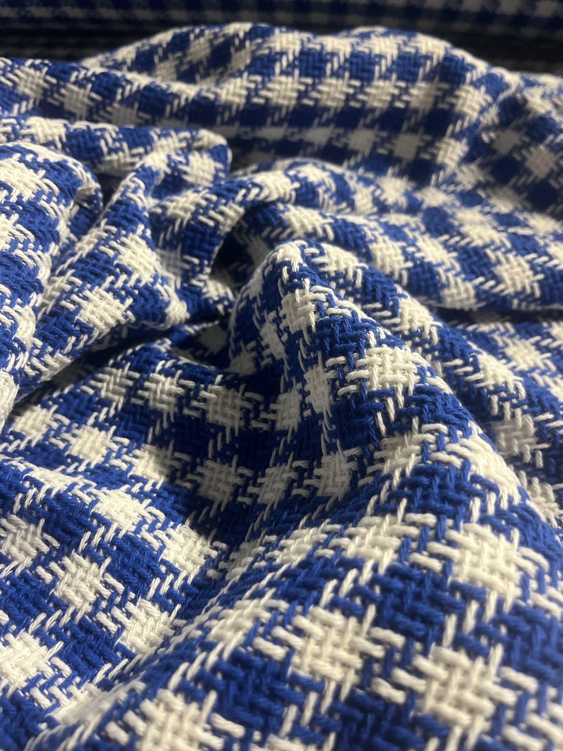 white/cobalt Chanel look tweed.