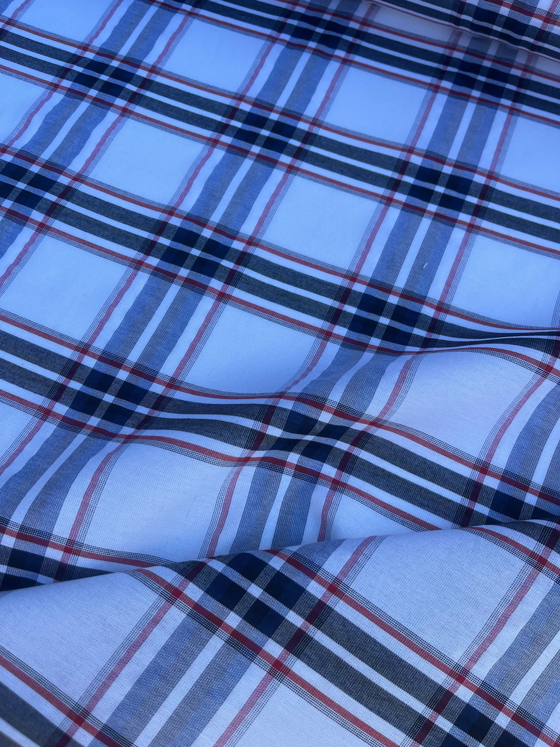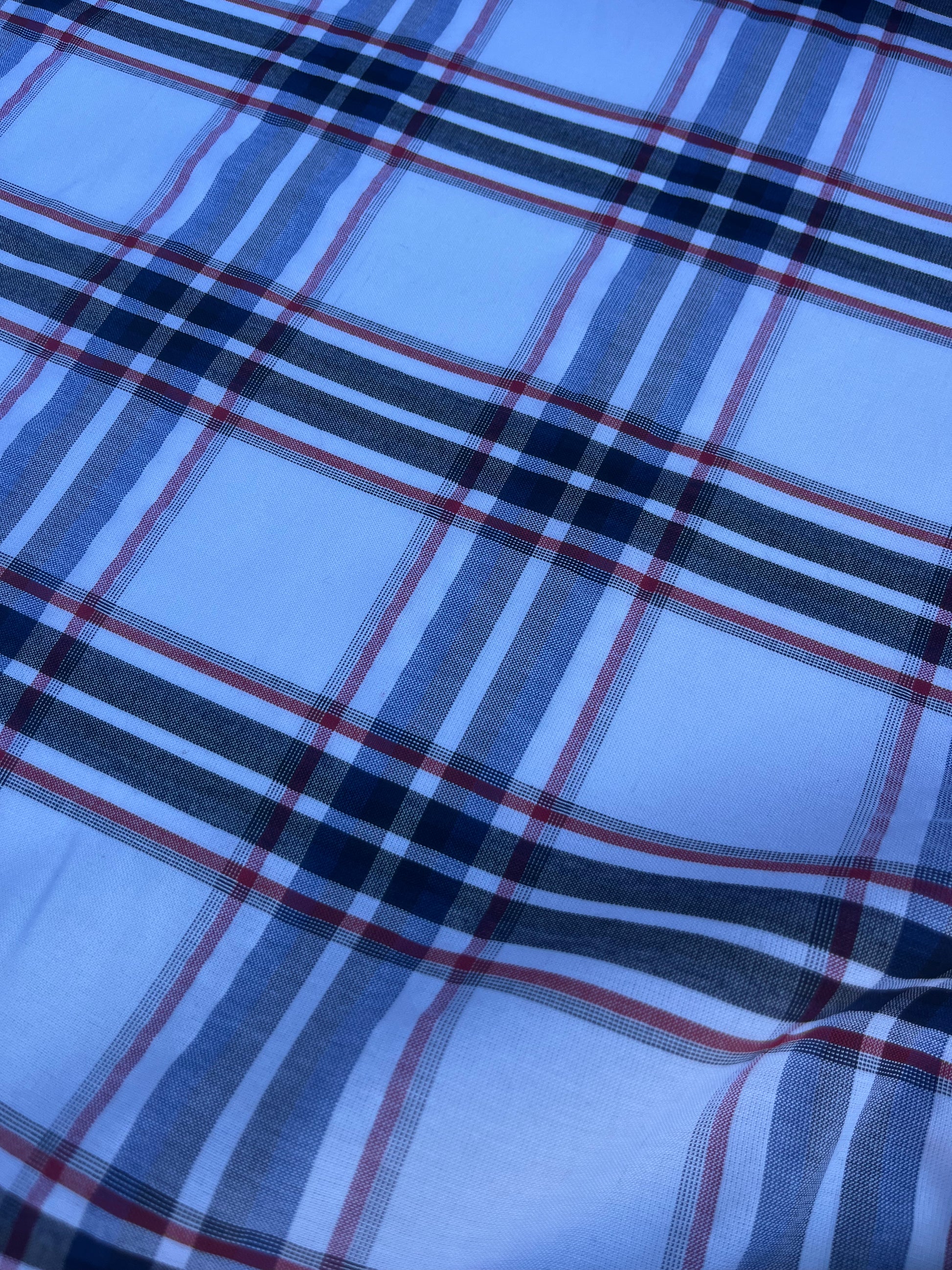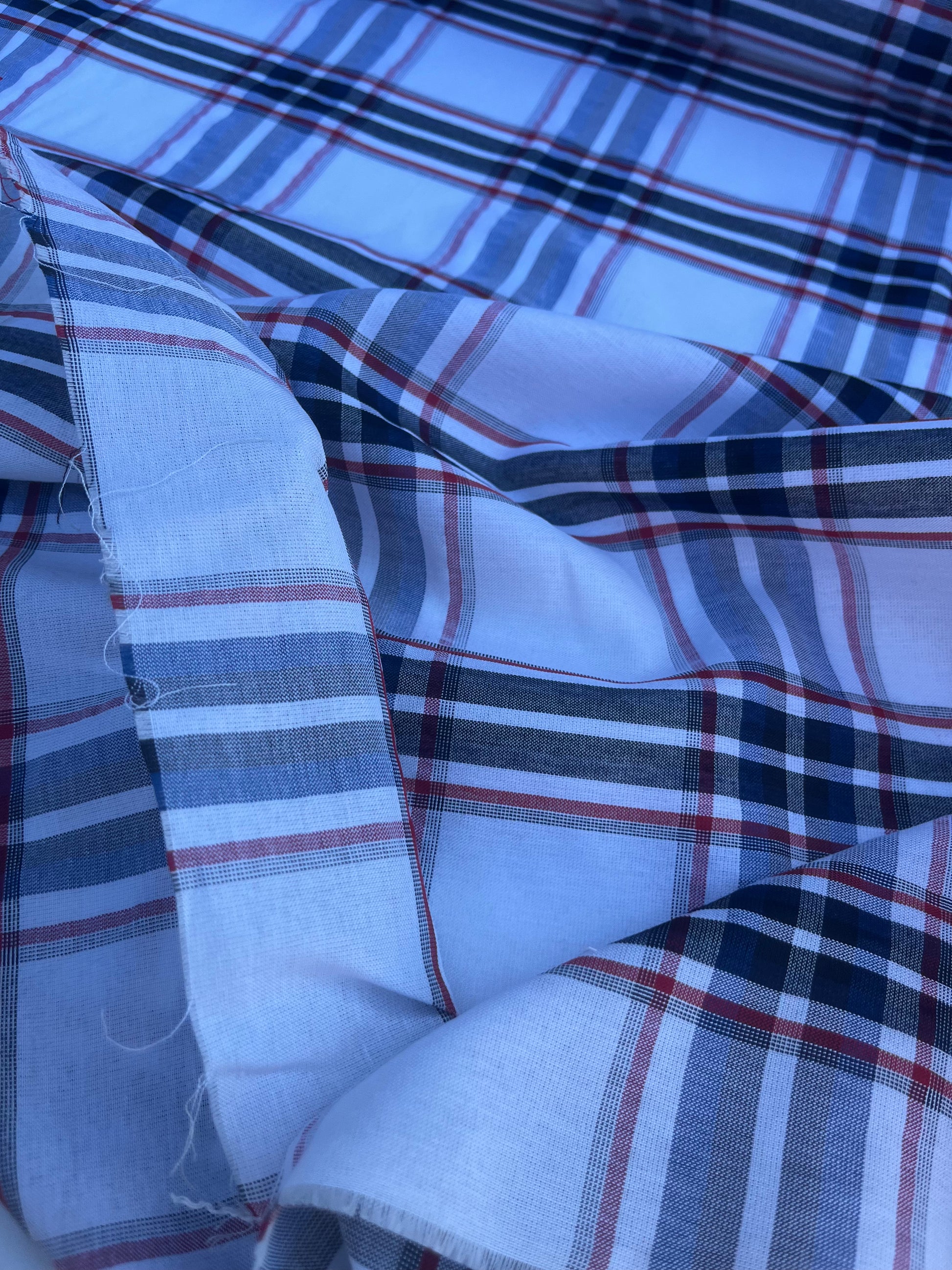 Beautiful deadstock colourwoven voile white/navy/red