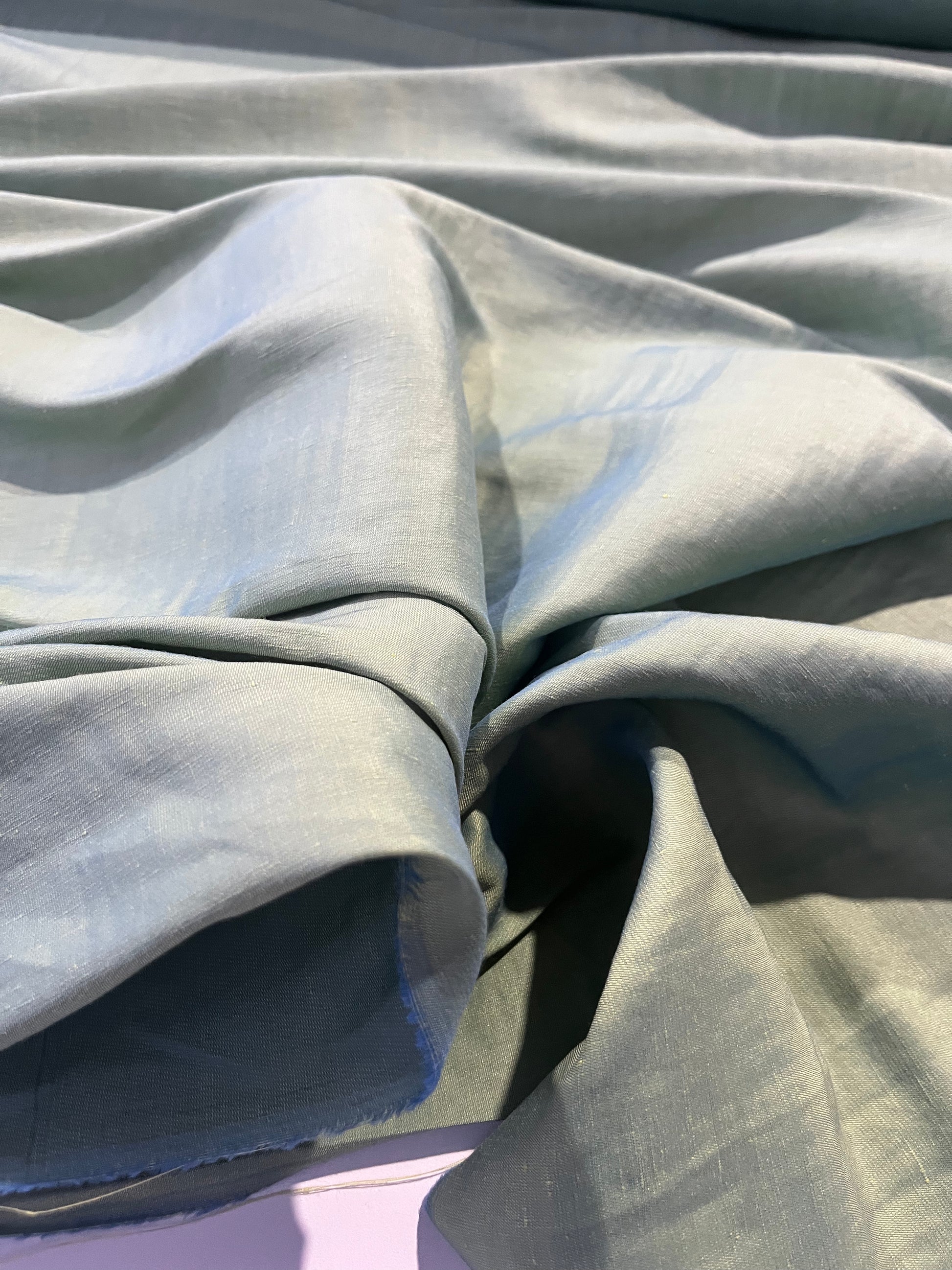 Beautiful deadstock viscose linen two tone. You could use 2 sides. one is green, one is turquoise.
